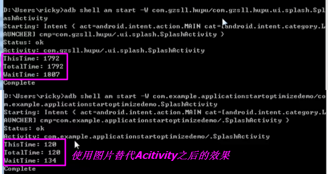 adb shell am start -W com.example.applicationstartoptimizedemo/com.example.applicationstartoptimizedemo.SplashActivity