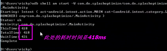 adb shell am start -W com.dn.splashoptimize/com.dn.splashoptimize.MainActivity